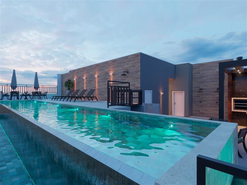 º Área gourmet com churrasqueira e forno de pizza;
